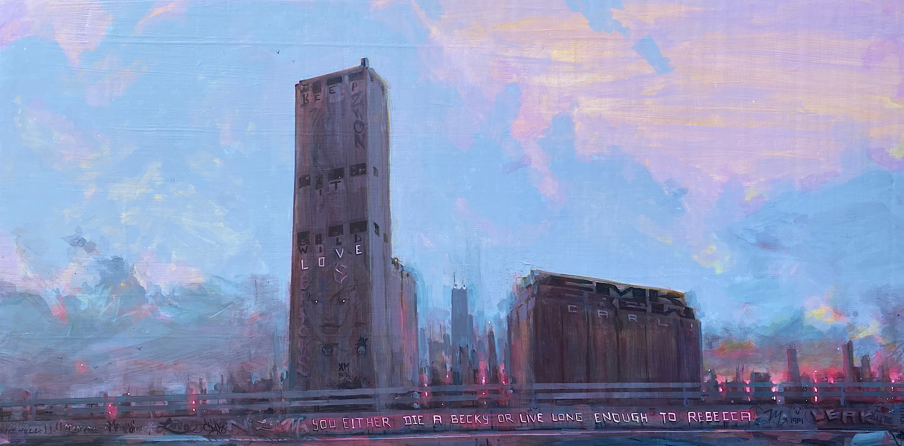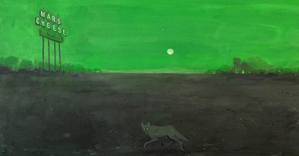 New paintings up at Green Eye, 2403 W. Homer in Chicago. Up now through the end of 2025. This series is a bit of a continuation of Context, using a text/signs and bright, monochromatic color schemes.